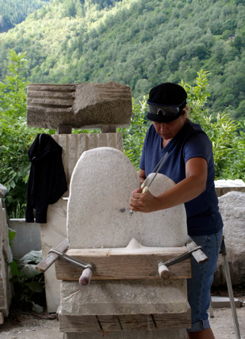 Steinbildhauen im August an der Bildhauerschule Peccia