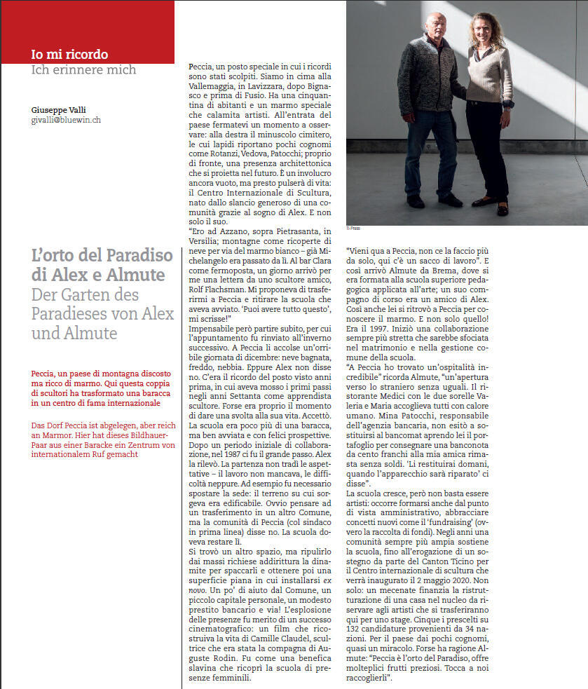 In der Rubrik "Ich erinnere mich" ist ein schöner Artikel über die Geschichte der Scuola di Scultura erschienen - herzlichen Dank!