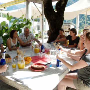 Frühstück & Mittagessen werden von den Teilnehmenden selbst organisiert und können frei gestaltet werden. Am Abend findet ein gemeinsames Essen in der Ex-Osteria in Prato Sornico statt.