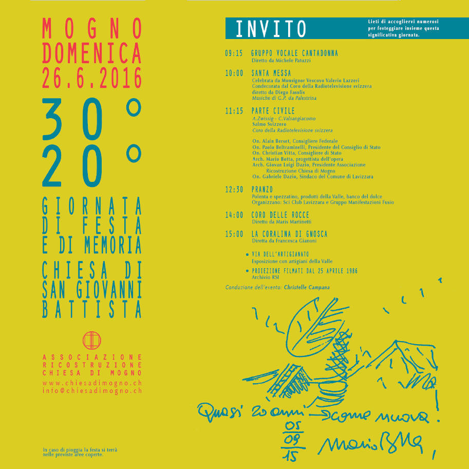 Ricorrenza a 30 anni dalla caduta della valanga (25 aprile 1986) e a 20 anni dalla fine dei lavori di ricostruzione.